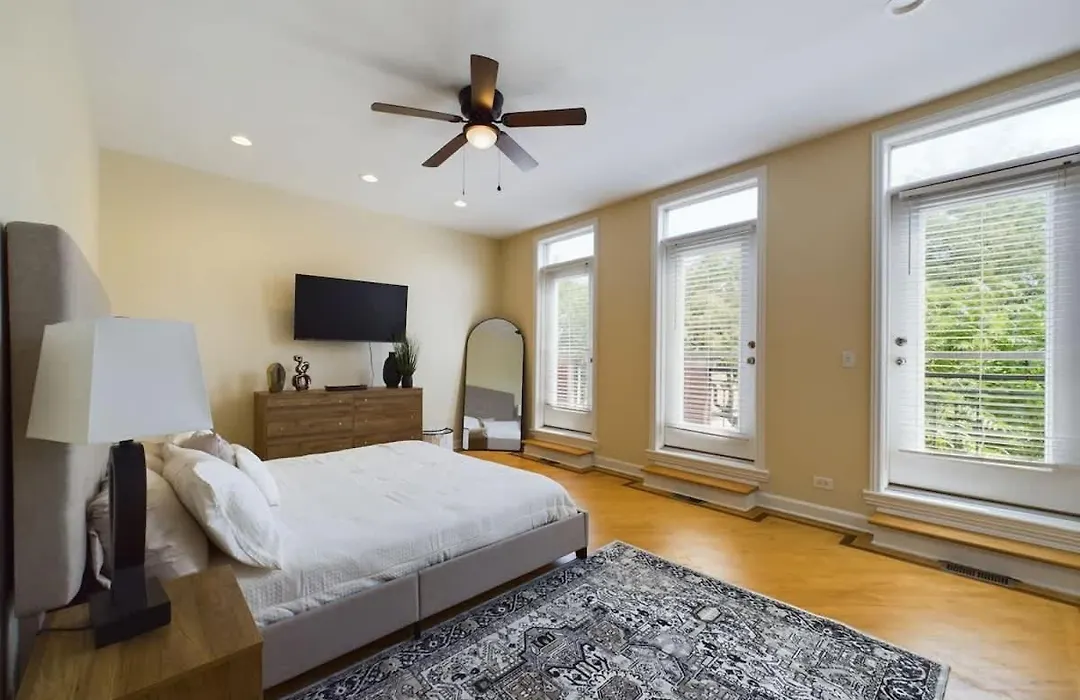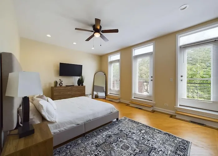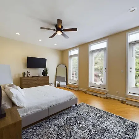 Situada en el distrito West Town, la casa de vacaciones está a unos cuantos pasos de la parada de autobús Grand & Paulina. Los huéspedes pueden visitar el Museo de la Naturaleza Peggy Notebaert, que está a unos 10 minutos en coche de esta villa, o visitar la Fuente Conmemorativa Buckingham, que está a 15 minutos en coche. Entre los lugares de interés educativo a 3,1 km de la villa Luxe 4Br With Hot Tub & Game Room se encuentra la Universidad DePaul.